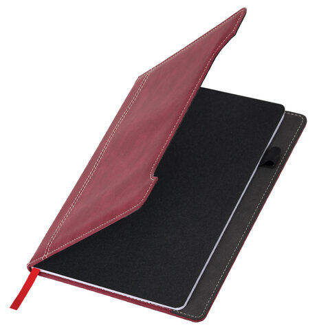 Блокнот А5 165x218 мм, BRAUBERG "Perfect", под кожу софт-тач, держатель для ручки, 80 листов, клетка, бордовый, 116616