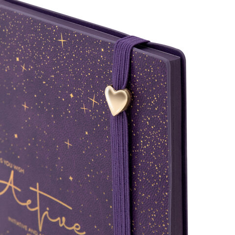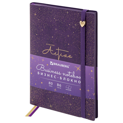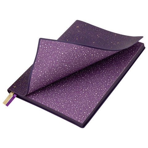 Блокнот B6 130x184мм BRAUBERG "Stellar", под кожу, 80 листов, фольга, резинка, клетка, фиолетовый, 118655
