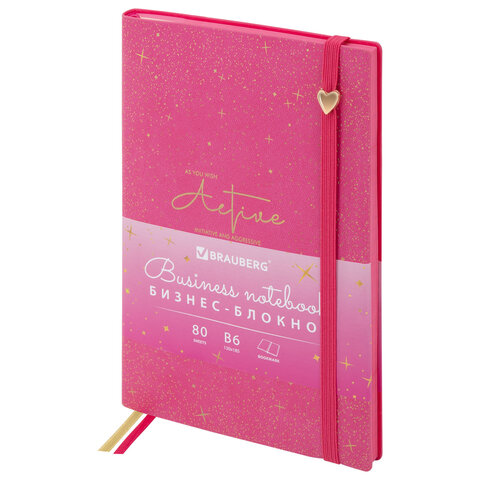 Блокнот B6 130x184мм BRAUBERG "Stellar", под кожу, 80 листов, фольга, резинка, клетка, розовый, 118654