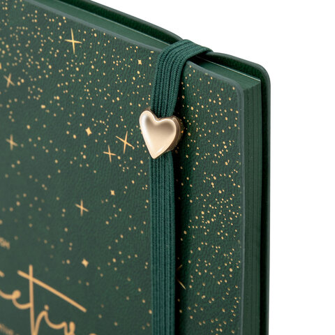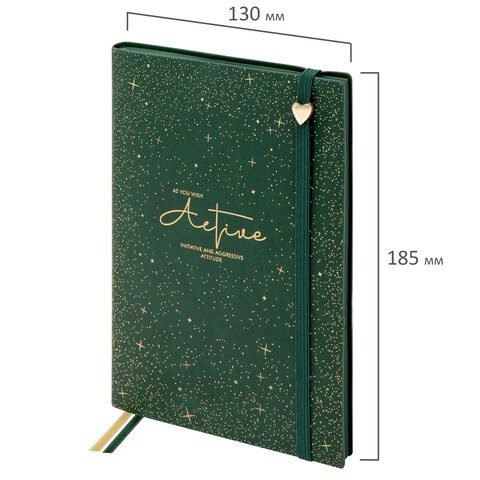 Блокнот B6 130x184мм BRAUBERG "Stellar", под кожу, 80 листов, фольга, резинка, клетка, зеленый, 118653