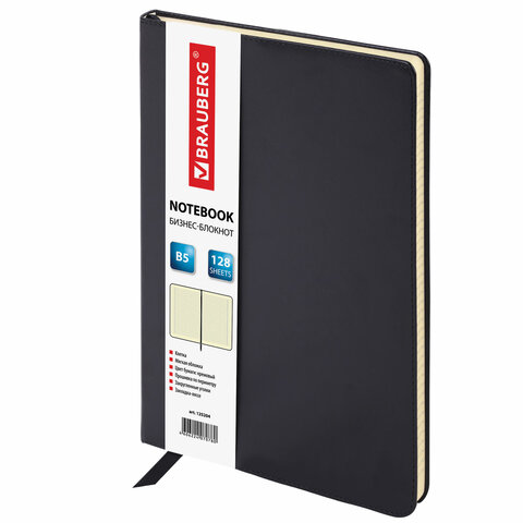 Блокнот БОЛЬШОЙ ФОРМАТ (200х252 мм) В5, BRAUBERG "Income", кожзам, 128 л., клетка, черный, 125204