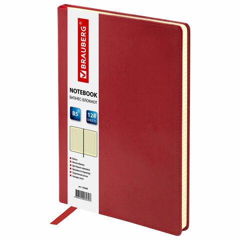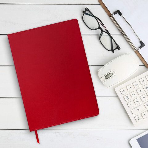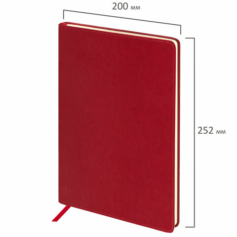Блокнот БОЛЬШОЙ ФОРМАТ (200х252 мм) В5, BRAUBERG "Income", кожзам, 128 л., клетка, красный, 125205