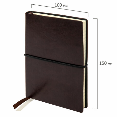 Блокнот МАЛЫЙ ФОРМАТ (100х150 мм) А6, BRAUBERG "Western", 128 л., гладкий кожзам, резинка, клетка, коричневый, 125241