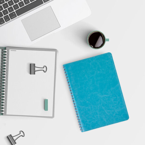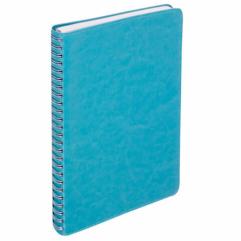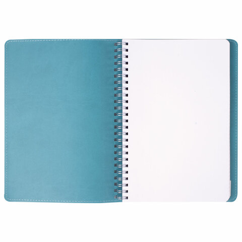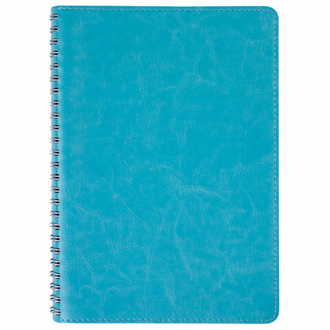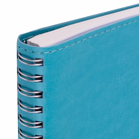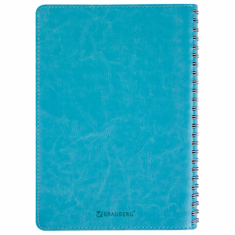 Бизнес-тетрадь на гребне А5 148x218 мм, BRAUBERG "Office PRO", под кожу, клетка, 80 л., бирюзовая, 111043