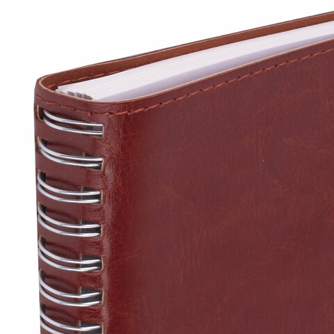 Бизнес-тетрадь на гребне А5 148x218 мм, BRAUBERG "Office PRO", под кожу, клетка, 80 л., коричневая, 111044