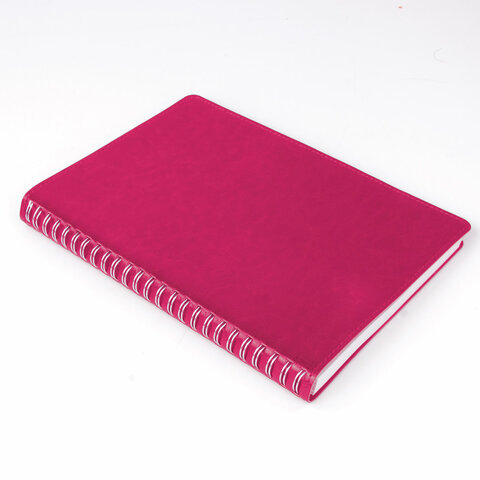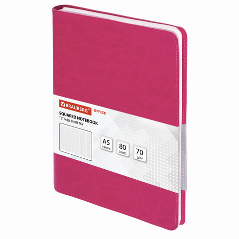Бизнес-тетрадь на гребне А5 148x218 мм, BRAUBERG "Office PRO", под кожу, клетка, 80 л., розовая, 111042