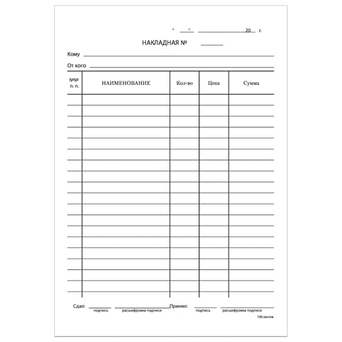 Вид бланка Накладная