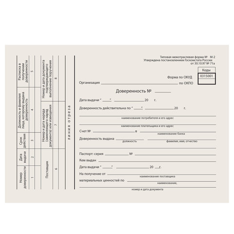 Бланк бухгалтерский типографский "Доверенность", А5 (134х192 мм), СКЛЕЙКА 100 шт., 130013