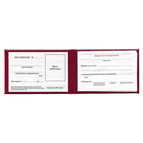 Удостоверение для проверки правил работы в электроустановках, КОМПЛЕКТ 5 шт., 66х100 мм, STAFF, 117574