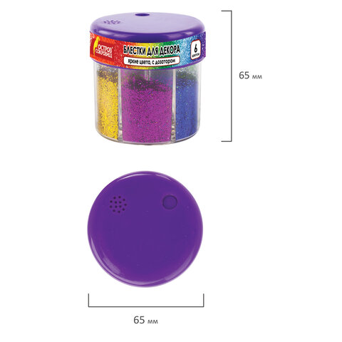 Блестки (глиттер) для декора, поделок, DIY, творчества, оформления, ОСТРОВ СОКРОВИЩ, диспенсер с дозатором, 6 цветов по 10 грамм, 191372