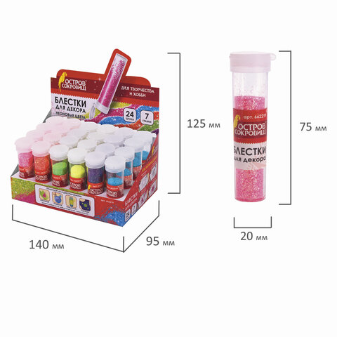 Блестки (глиттер) для декора, поделок, DIY, творчества, оформления, ОСТРОВ СОКРОВИЩ, НЕОН, 7 грамм, ассорти, в дисплее, 662219
