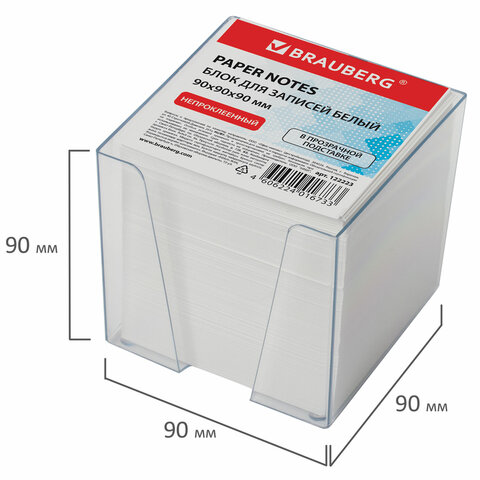 Блок для записей в боксе, 9х9х9 см, плотность 80 г/м2, белизна 95-98%, BRAUBERG, 122223