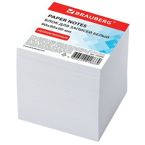 Блок для записей непроклеенный, 9х9х9 см, плотность 80 г/м2, белизна 95-98%, BRAUBERG, 122340