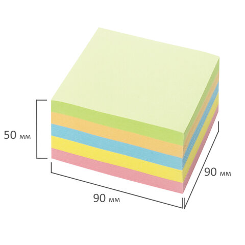 Блок для записей проклеенный, 9х9х5 см, плотность 80 г/м2, цветной, BRAUBERG, 129199