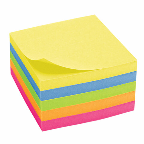 Блок самоклеящийся (стикеры), BRAUBERG, НЕОНОВЫЙ, 76х76 мм, 400 листов, 5 цветов, 122855