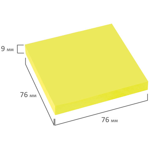 Блок самоклеящийся (стикеры), BRAUBERG, НЕОНОВЫЙ, 76х76 мм, 90 листов, желтый, 122702
