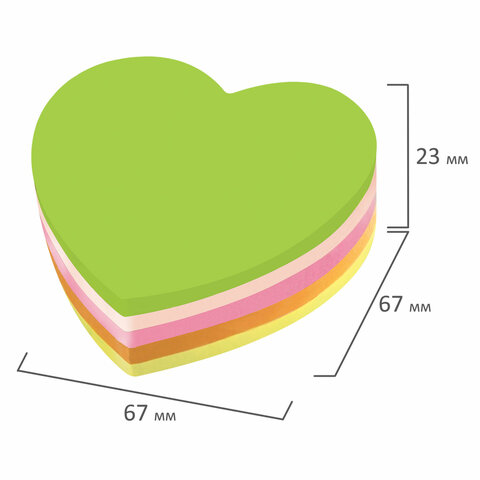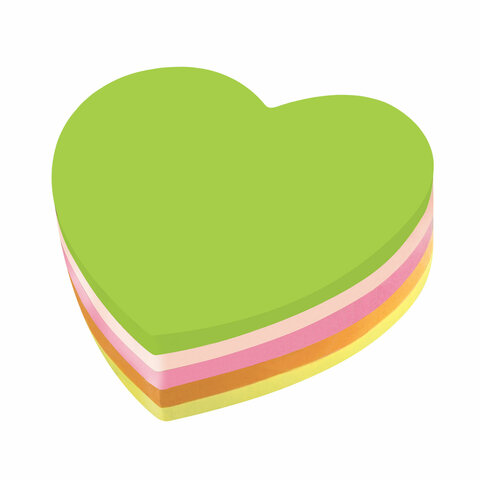 Блок самоклеящийся (стикеры), фигурный, BRAUBERG, НЕОНОВЫЙ "Сердце", 250 листов, 5 цветов, 126690