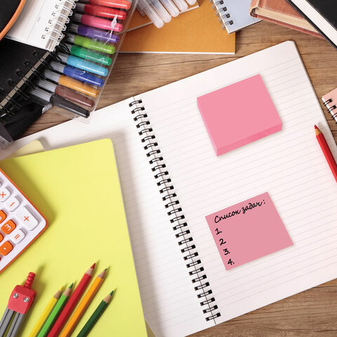 Блок самоклеящийся (стикеры) STAFF, 50х50 мм, 100 листов, розовый, 127143