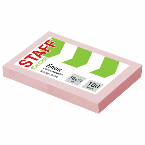 Блок самоклеящийся (стикеры) STAFF STANDARD, ПАСТЕЛЬНЫЙ 76х51 мм, розовый, 100 листов, 116584