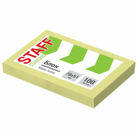 Блок самоклеящийся (стикеры) STAFF STANDARD, ПАСТЕЛЬНЫЙ 76х51 мм, желтый, 100 листов, 116581