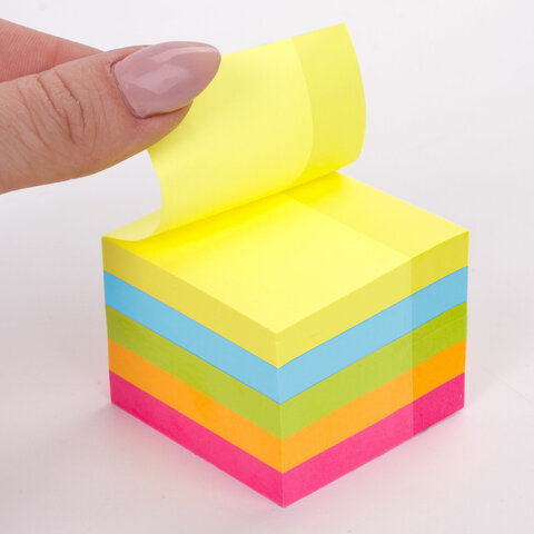 Блок самоклеящийся (стикеры) ЮНЛАНДИЯ НЕОНОВЫЙ 51х51 мм, 400 листов, 5 цветов, 111346