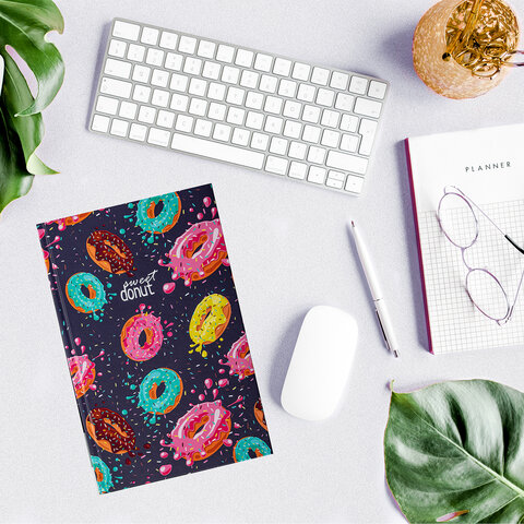 Блокнот А5 (134х206 мм), 80 л., твёрдый, клетка, выборочный лак, BRAUBERG KIDS, "Donuts", 114425