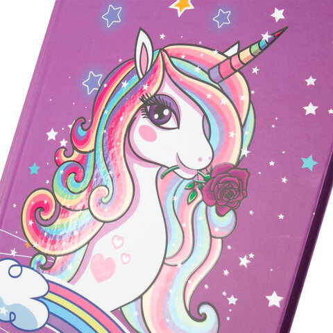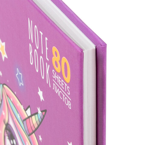 Блокнот А5 134х206 мм, 80 л., твердый, клетка, выборочный лак, ЮНЛАНДИЯ, "Единорог", 111616