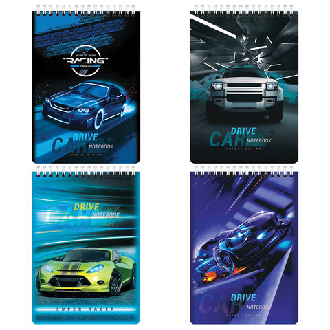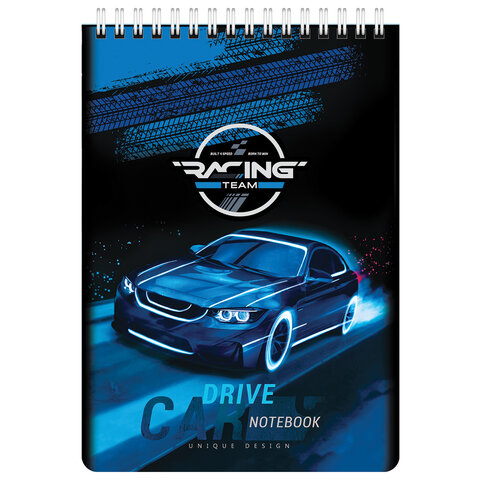 Блокнот А5 (146х206 мм), 60 л., гребень, картон, клетка, BRAUBERG KIDS, "Racing", 114363
