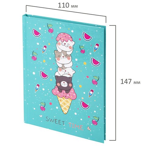 Блокнот МАЛЫЙ ФОРМАТ (110х147 мм), А6, 80 л., твёрдый, клетка, BRAUBERG KIDS, "Котики", 114443