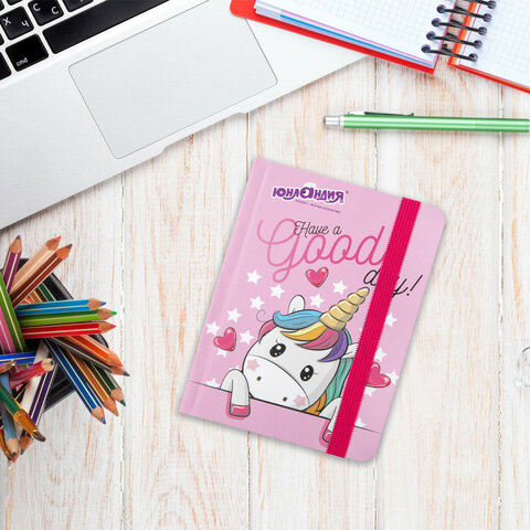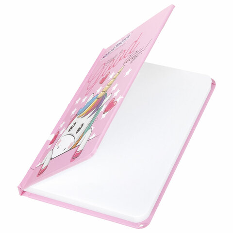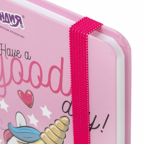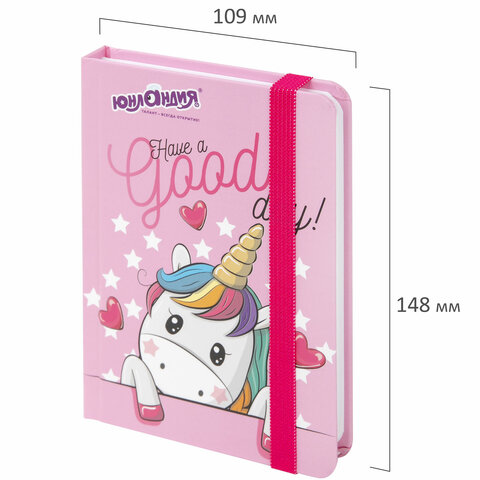 Блокнот с резинкой в клетку 96 л., МАЛЫЙ ФОРМАТ А6 (109х148 мм), твердая обложка, ЮНЛАНДИЯ, "Unicorn", 113742