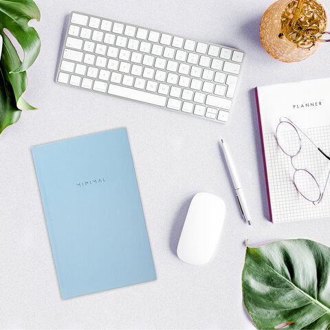 Блокнот А5 134х206 мм, 80 л., твёрдый, клетка, BRAUBERG "Minimal", голубой, 116442