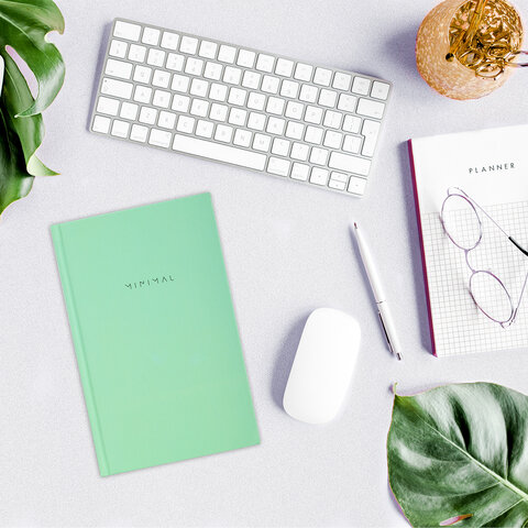 Блокнот А5 134х206 мм, 80 л., твёрдый, клетка, BRAUBERG "Minimal", мятный, 116443