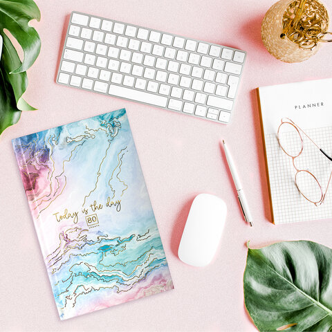 Блокнот А5 134х206 мм, 80 л., твёрдый, клетка, тиснение фольгой, STAFF, "Мрамор", 114428
