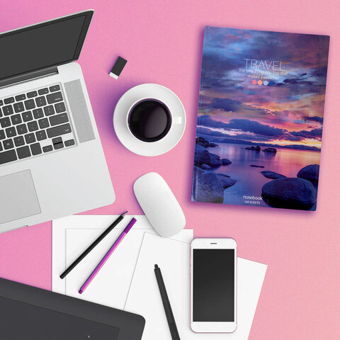 Блокнот БОЛЬШОЙ ФОРМАТ (205х290 мм) А4, 128 л., твердый, клетка, STAFF, "Безмятежность", 114407