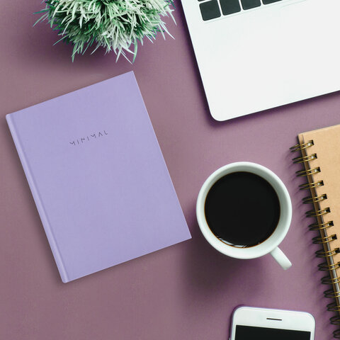 Блокнот МАЛЫЙ ФОРМАТ 110х147 мм, А6, 80 л., твердый, клетка, BRAUBERG "Minimal", сиреневый, 116448