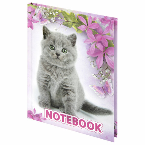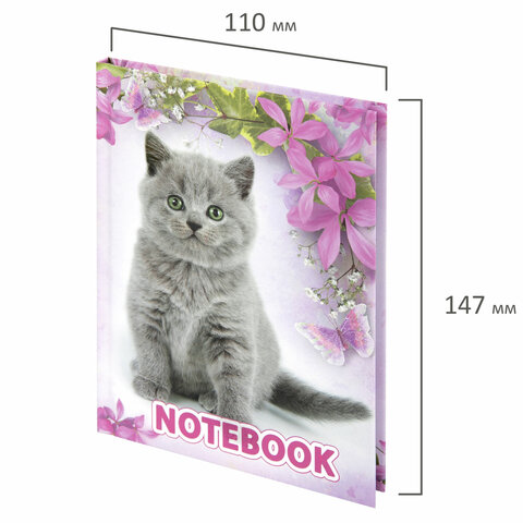 Блокнот МАЛЫЙ ФОРМАТ 110х147 мм, А6, 80 л., твердый, клетка, выборочный лак, BRAUBERG, "Котята", 122192