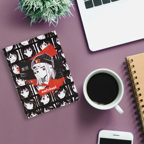 Блокнот МАЛЫЙ ФОРМАТ (110х147 мм), А6, 80 л., твёрдый, клетка, STAFF, "Аниме", 114436