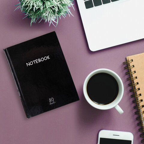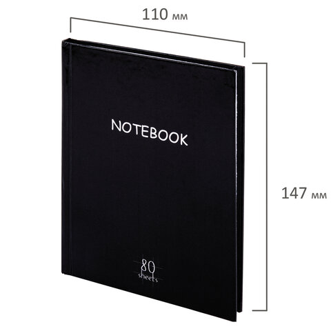 Блокнот МАЛЫЙ ФОРМАТ (110х147 мм), А6, 80 л., твёрдый, клетка, STAFF, "Black", 114435