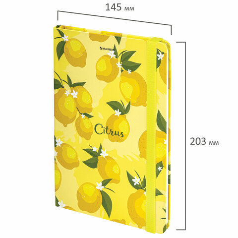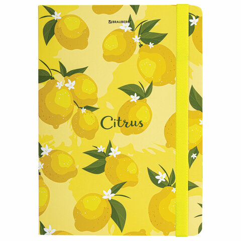 Блокнот с резинкой без линовки 96 л., А5 (145х203 мм), твердая обложка, BRAUBERG, "Lemons", 113727