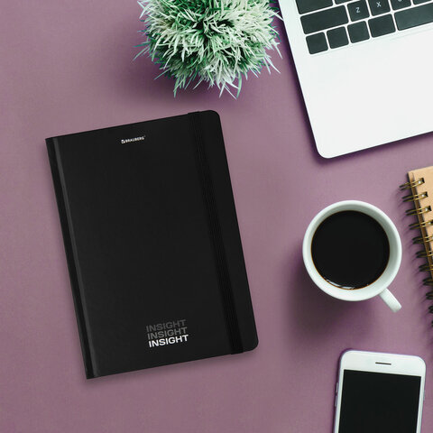 Блокнот с резинкой в клетку 96 л., А5, 145х203 мм, твердая обложка, BRAUBERG, "Insight", 113723