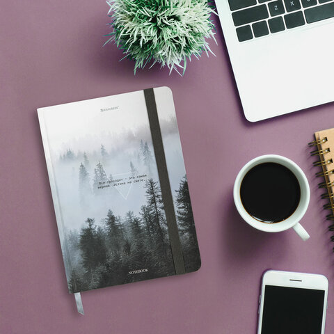 Блокнот с резинкой в клетку 96 л., А5 145х203 мм, твердая обложка, BRAUBERG, "Туман", 116315