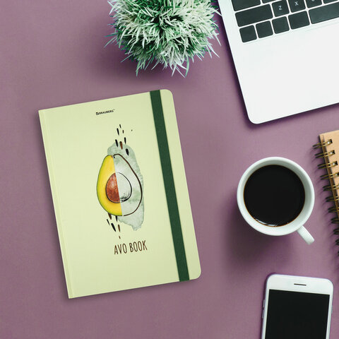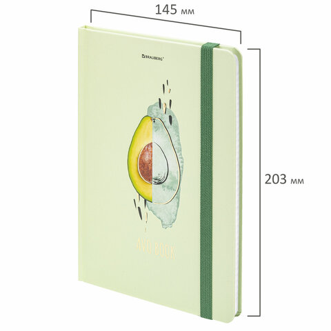 Блокнот с резинкой в клетку 96 л., А5, 145х203 мм, твердая обложка с фольгой, BRAUBERG, "Avocado", 113733