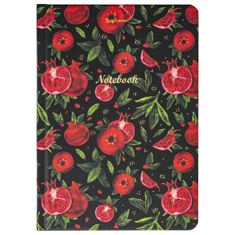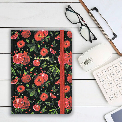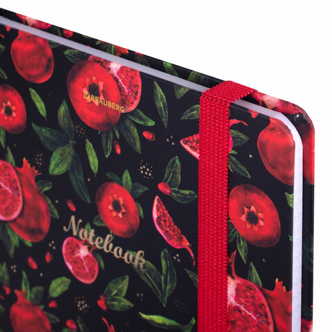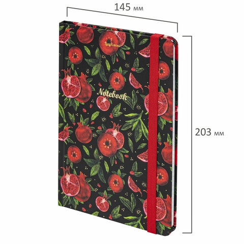 Блокнот с резинкой в клетку 96 л., А5, 145х203 мм, твердая обложка с фольгой, BRAUBERG, "Гранаты", 113730