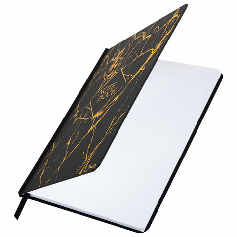 Блокнот с резинкой в клетку 96 л., А5 145х203 мм, твердая обложка с фольгой, BRAUBERG, "Marble", 116328