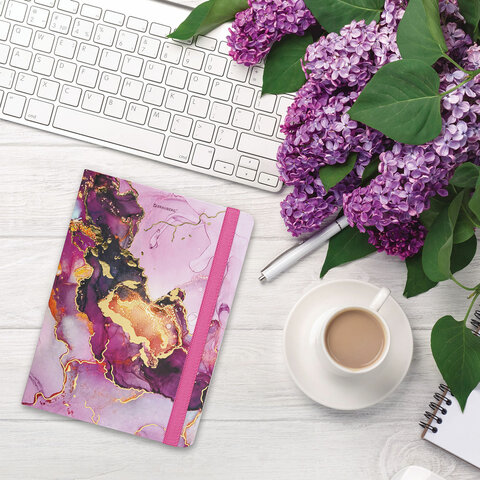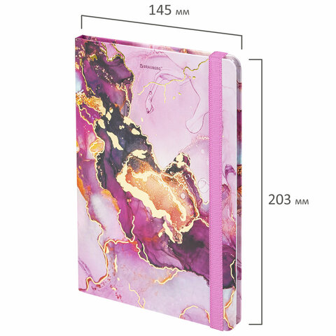 Блокнот с резинкой в клетку 96 л., А5, 145х203 мм, твердая обложка с фольгой, BRAUBERG, "Мрамор", 113731