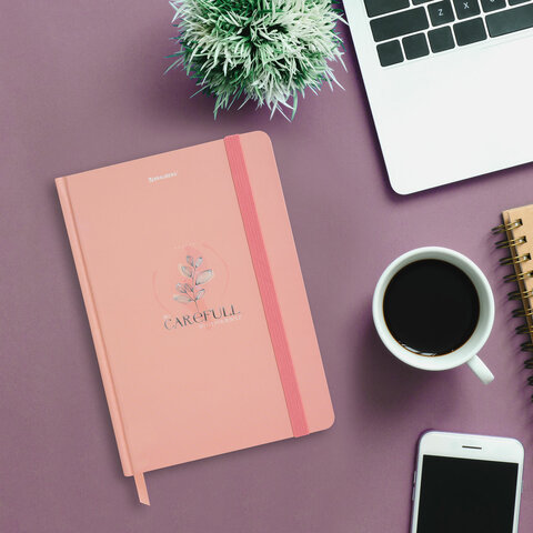 Блокнот с резинкой в клетку 96 л., А5 145х203 мм, твердая обложка с фольгой, BRAUBERG, "Pastel", 116330