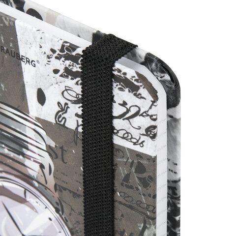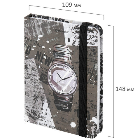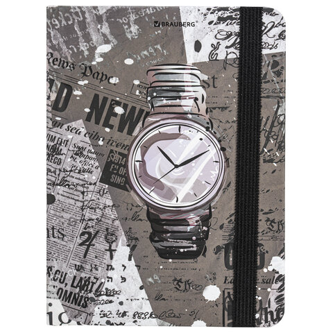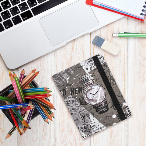 Блокнот с резинкой в клетку 96 л., МАЛЫЙ ФОРМАТ А6 (109х148 мм), твердая обложка, BRAUBERG, "Часы", 113737