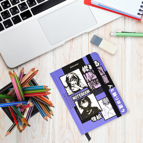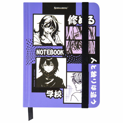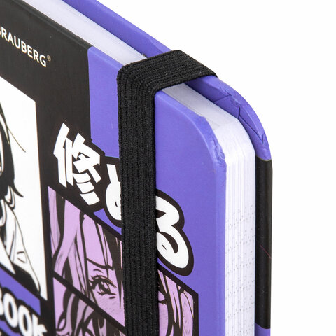 Блокнот с резинкой в клетку 96 л., МАЛЫЙ ФОРМАТ А6, 109х148 мм, твердая обложка, BRAUBERG, "Anime", 116336