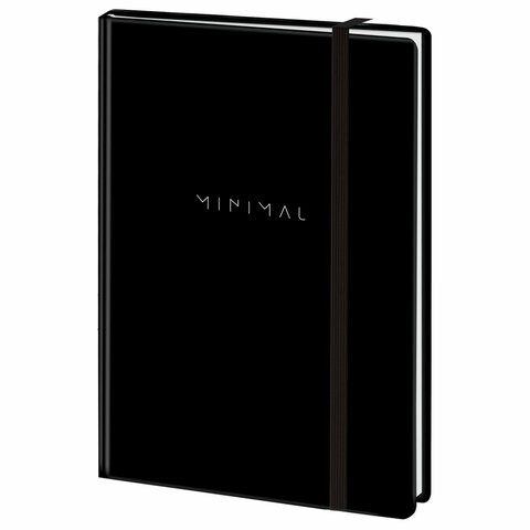 Блокнот с резинкой в клетку 96 л., А5, 145х203 мм, твердая обложка, BRAUBERG, "Minimal", чёрный, 115532