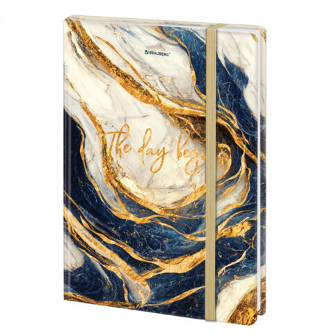 Блокнот с резинкой в клетку 96 л., А5, 145х203 мм, твердая обложка с фольгой, BRAUBERG, "Marble", 115536